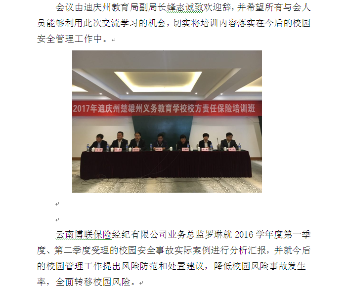 2017年迪慶州、楚雄州義務(wù)教育學(xué)校校方責(zé)任保險(xiǎn)培訓(xùn)會(huì)