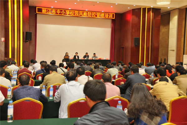 為進(jìn)一步推進(jìn)麗江市學(xué)校園風(fēng)險(xiǎn)管理工作,根據(jù)《云南省教育廳關(guān)于舉辦中小學(xué)校園風(fēng)險(xiǎn)管理培訓(xùn)班的通知》(云教函[2015]317號(hào))文件精神,2015年9月22日麗江市教育局召開了中小學(xué)校園風(fēng)險(xiǎn)防控管理培訓(xùn)班。麗江市各縣(區(qū))教育局分管安全工作的副局長及業(yè)務(wù)股(室)負(fù)責(zé)人;各鄉(xiāng)鎮(zhèn)中心學(xué)校校長;初中學(xué)校(含九年一貫制學(xué)校)校長;市實(shí)驗(yàn)學(xué)校分管安全工作副校長;市特殊教育學(xué)校分管安全工作副校長;市民族孤兒學(xué)校分管安全工作副校長;麗江文林實(shí)驗(yàn)學(xué)校分管安全工作副校長參加了此次會(huì)議。